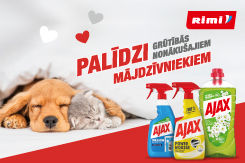 Nopērkot jebkuru AJAX produktu veikalā Rimi, Tu ziedo 0,30 EUR mūsu četrkājainajiem patversmes iemītniekiem. No 20. janvāra līdz 2. februārim, iegādājoties AJAX produktus Rimi veikalos, 30 centi no pirkuma summas tiks ziedoti bez pajumtes palikušiem